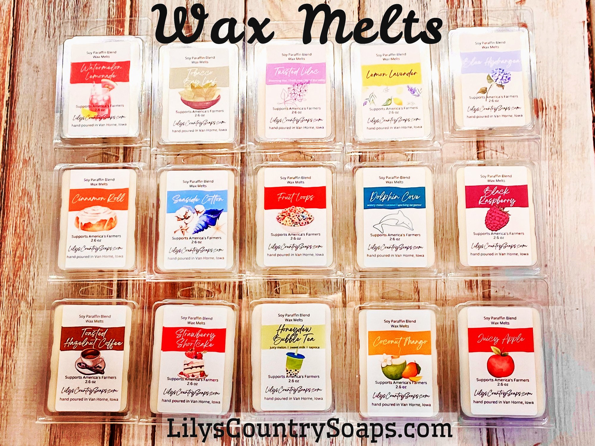 Enjoy our wax melts with over 51% soy from American farmers! Look for matching scents in our candles, goat milk soaps, lotions, etc. Please contact us if you don't see what you are interested in.